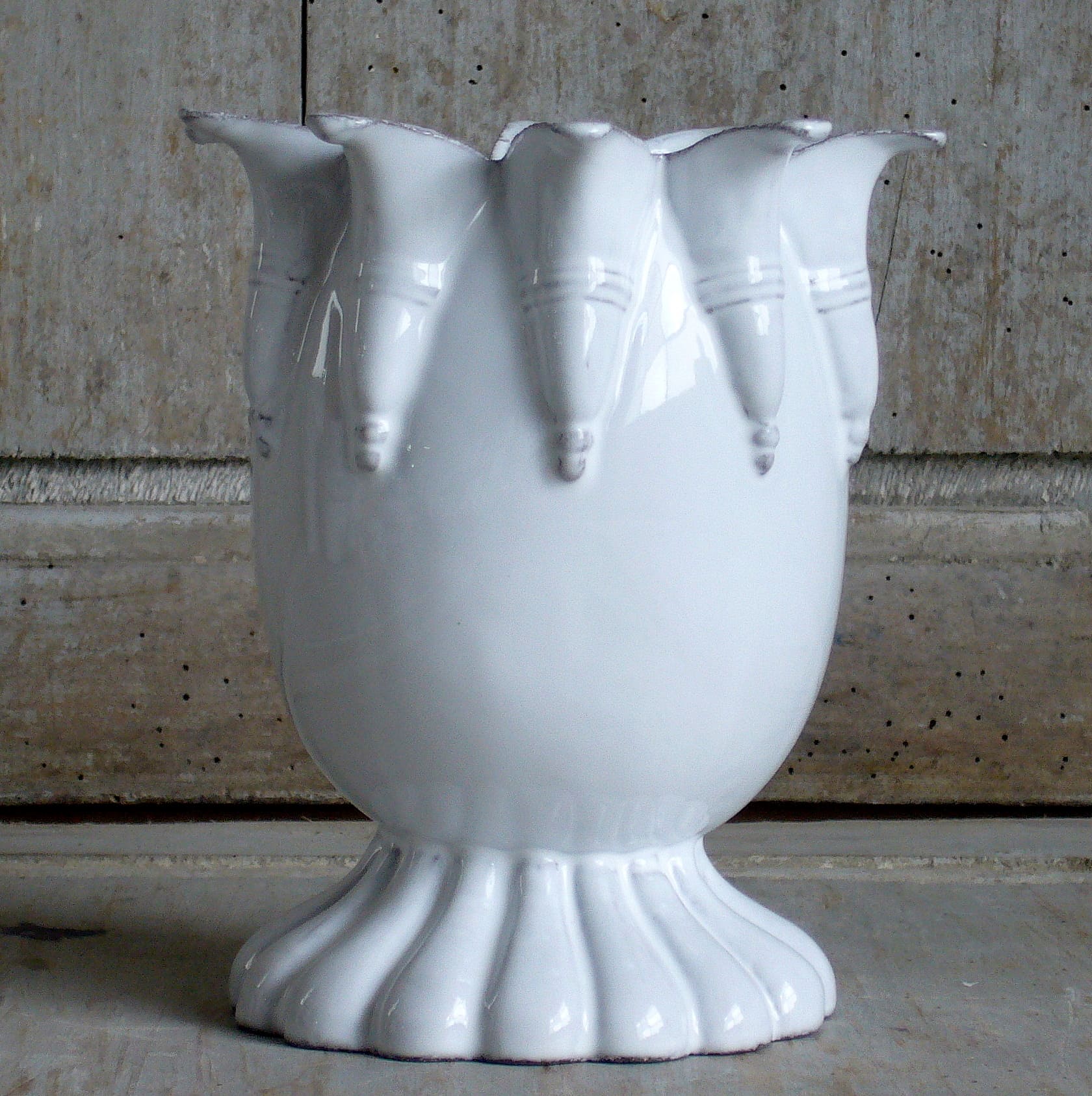 " Vase 8 becs " imaginé par Jean-Baptiste Astier de Villatte et réalisée en faïence brune et émail blanc . Estampillé "JB AdeV, créations depuis 1993", éditeur.