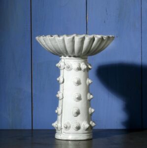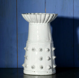 "Moyen vase Boutons " imaginé par Jean-Baptiste Astier de Villatte et réalisé en faïence brune émaillée en blanc brillant. Estampillé "JB AdeV, créations depuis 1993", éditeur. C 022 200 000 & C 022 201 000
