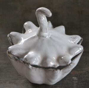 "Petit bouillon Jack be little Fruits & Légumes" imaginé par Jean-Baptiste Astier de Villatte et réalisé en faïence brune émaillée en blanc. Estampillé "JB AdeV, créations depuis 1993", éditeur.